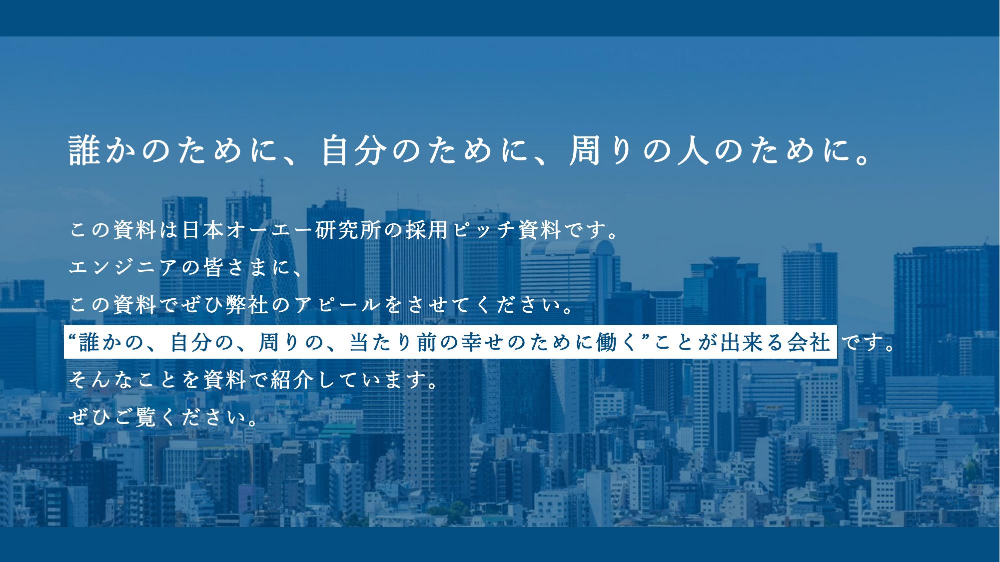 「株式会社日本オーエー研究所」の採用ピッチ資料詳細|GOOD FOR JOB
